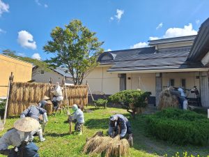 今年は出羽伝承館の入り口、向かって左側で案山子の皆さんが作業をされてます🌾