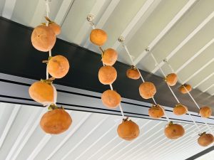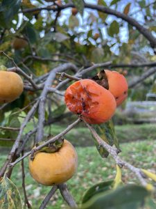 今年は鳥も柿を食べに来るそうで、いくつか食べられた跡が残ります。