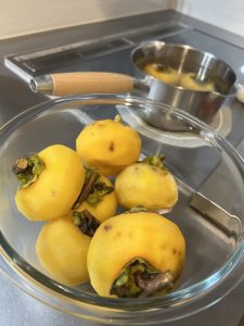 柿の皮剥きをしている時に皆でお茶にいただきました。地のものを採れたてでいただける、幸せです☺️