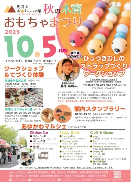 この週末は、子どもに大人気の「鳥海山木のおもちゃ館」で「秋の木育 おもちゃまつり」が開催されます。