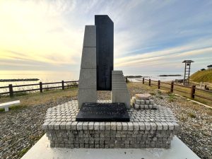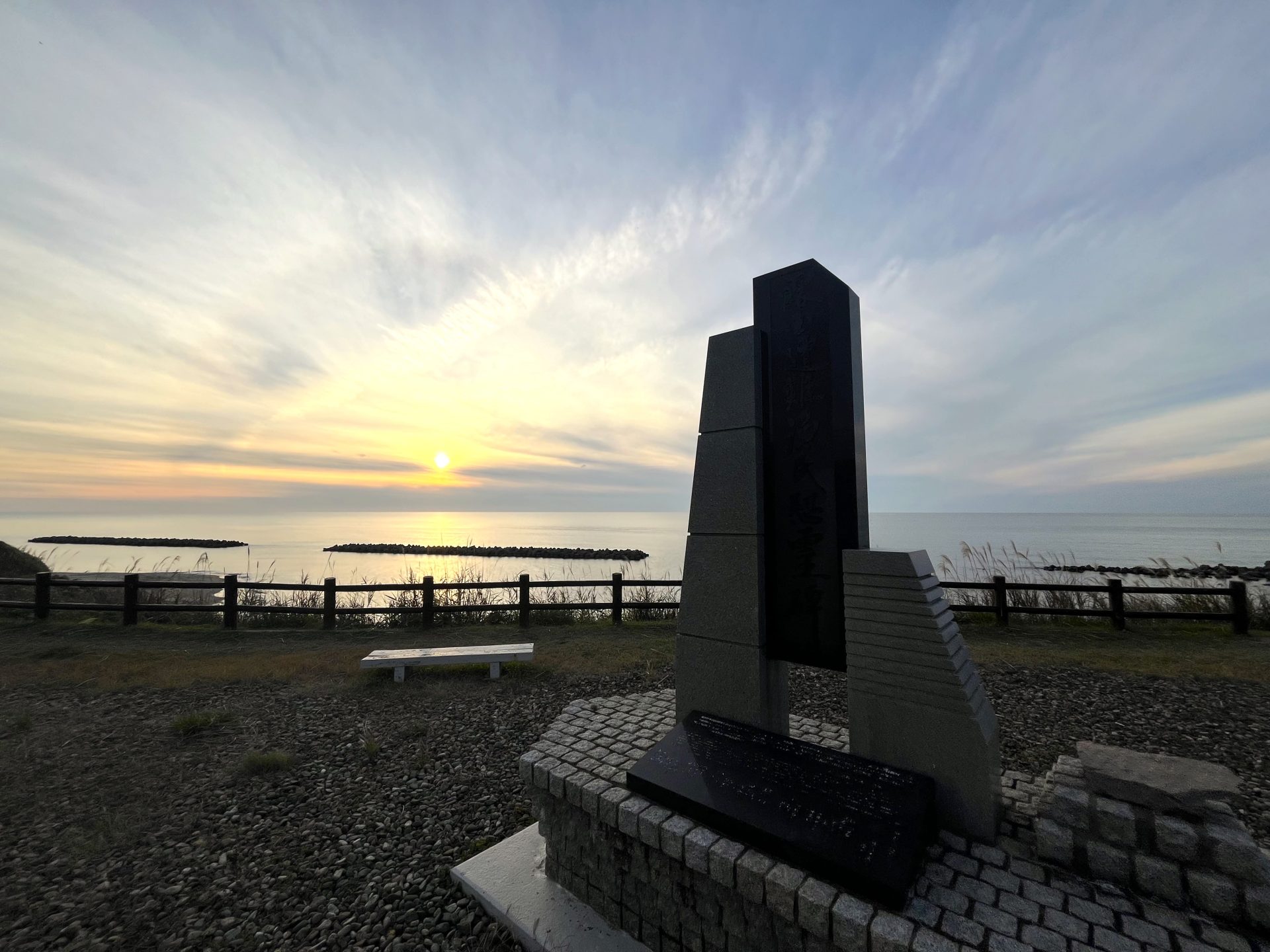 ヒロシです。何気なくドライブしているときに見かけるふとした場所。海沿いの町内で生まれ育ったヒロシにとって、日本海と夕陽の情景はなじみ深いもので、国道7号を通るたびに気になっていた公園があります。