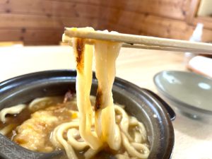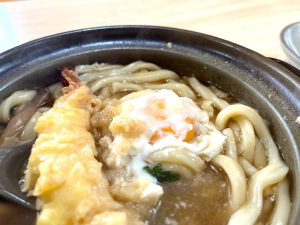 そして熱々そうなカレー煮込みに魅力を感じつつ、新たなフェアへの忠誠を誓う意味でも別の季節ものをオーダー。そうです、他のお客さんもほぼほぼ同じものを注文していた、この時期の定番がこちらの『鍋焼きうどん』で~す!!
