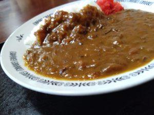 12.5勝手にカレーフェア(矢島 元町) 17回目になります 今年最後の「勝手にカレーフェア」は、オムライスとレバニラ定食が有名な、矢島地域にある食堂です。 ここの食堂では、いつもレバニラ定食を注文していましたが、本日、はじめてカレーライスを注文。 見た目が濃厚なカレーは、香ばしいマイルドな辛さだけでなく、出汁の利いたコクもあり、牛肉や野菜などの具材と良く絡み、お米との相性も抜群で、あっという間に食べてしまいました。 「いつもありがとうね。またきてね!」の言葉も、「ほっこり」温かい気持ちになりました。 ///// 文:佐藤 /////
