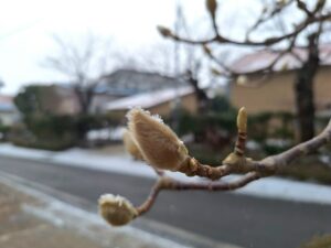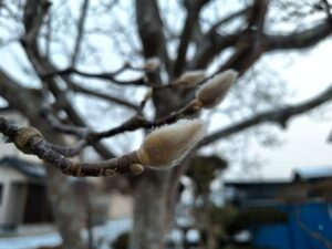 実家の庭先のモクレンのつぼみが膨らみ始めていました。