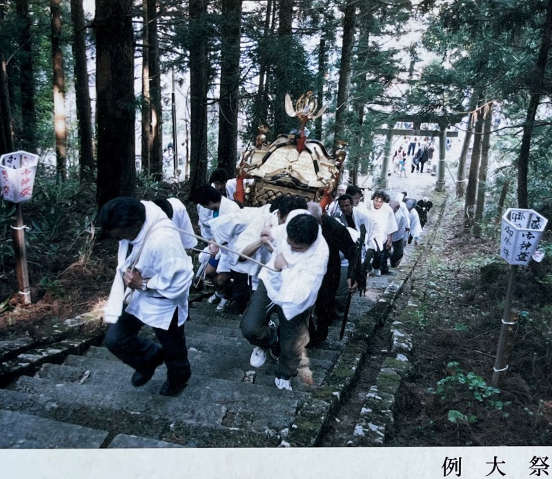 米俵10俵分の重さといわれる神輿をかついだ若集が、300段の石段を一気に駆け上る勇壮な姿は見応えたっぷり。