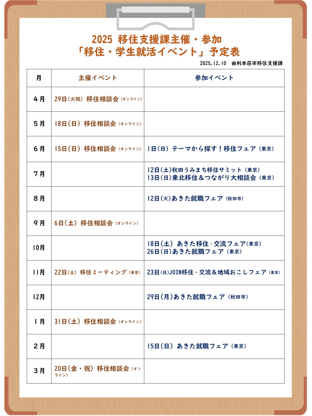 2025年度(R7) 移住・就活相談会 & イベント予定表