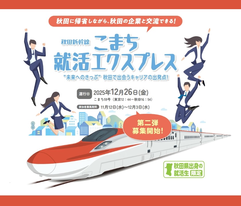 秋田県では秋田県出身の就活生に向け、12月26日(金)に「こまち就活エクスプレス」を開催します。