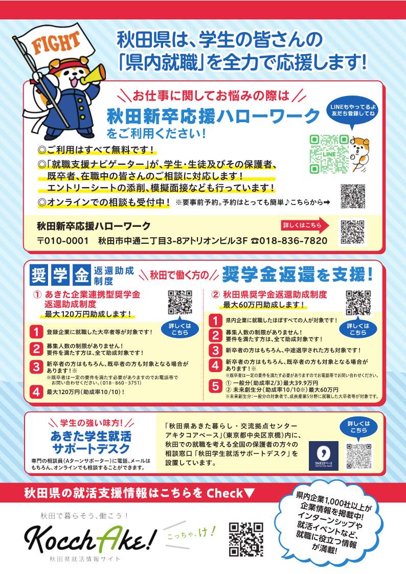 (主催:秋田県、秋田労働局、秋田新卒応援ハローワーク、県内各ハローワーク)