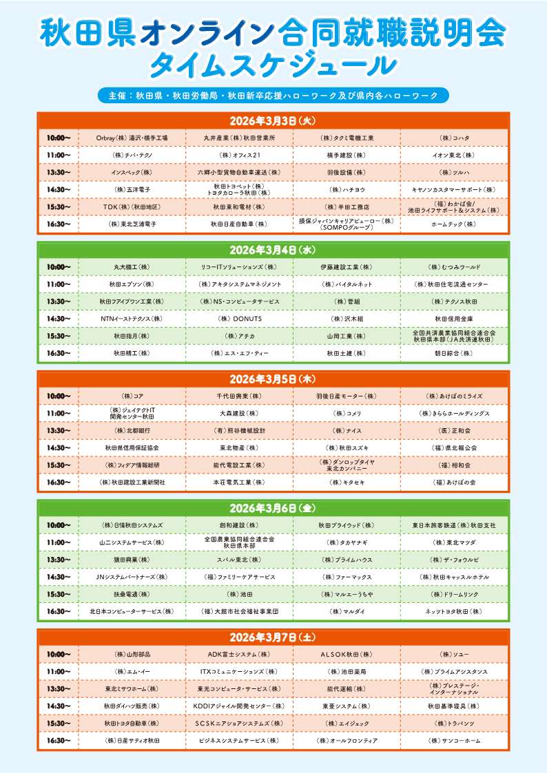 【主催】秋田県・秋田労働局・秋田新卒応援ハローワーク及び県内各ハローワーク