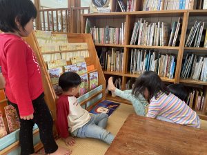 友達のみんなが集まってきたら読み聞かせの始まりです。✨