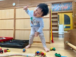 お家でも、電車や車のおもちゃで遊ぶ機会が多いようで、