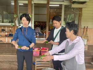 笹巻きづくりの先生に教えてもらいながら、もち米を笹の葉につめていきます!!