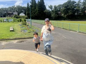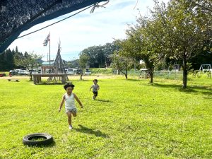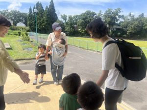 この日は平日、そして2組目のご家族が最終日で帰京するということで、東由利に到着すると同時にえみの森へ。まさに2組目ご家族が園を後にしようとしていたそのとき、2つのご家族がほんのわずかなご対面を果たしました♪