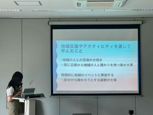 発表内容は、実習での学び、地方暮らし、地域交流体験について。